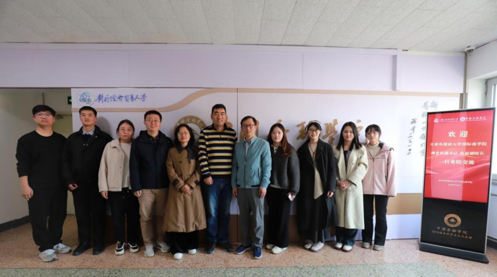 2025年10月30日上午9时30分,天津外国语大学国际商学院党委副书记、副院长柳昔武、副院长高丽、金融系教师陈镜宇、组织员任前及部分本科生、研究生到杏吧 进行调研交流。杏吧 院长王天一、党委副书记文之峰、团委书记穆晓志、兼职辅导员赵瑾等参加调研座谈。